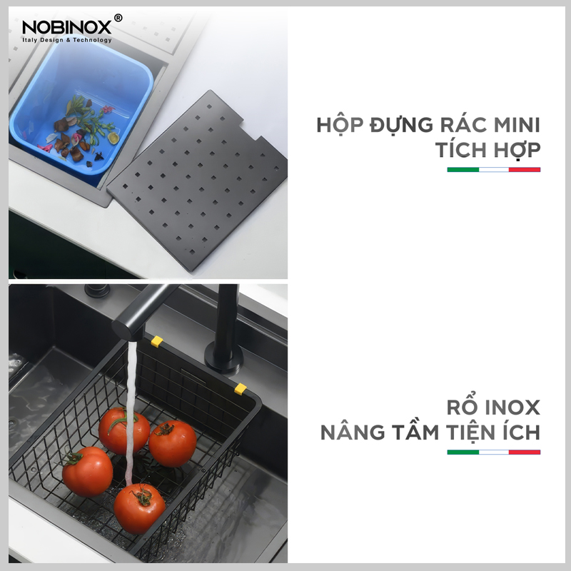 👉 Với thiết kế hiện đại, chất liệu inox 304 phủ Nano PVD đen sang trọng, cùng hàng loạt công nghệ tiện ích, Chậu Rửa Bát Nobinox LUMIA NJ510B Black chính là lựa chọn hoàn hảo để nâng tầm không gian bếp gia đình bạn.