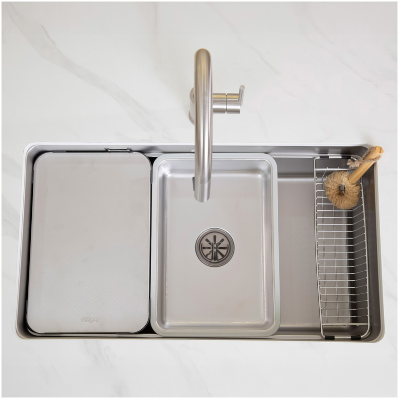Phụ kiện đi kèm như: rổ lọc, thớt inox, khay phụ… giúp sơ chế thực phẩm nhanh, gọn và sạch.