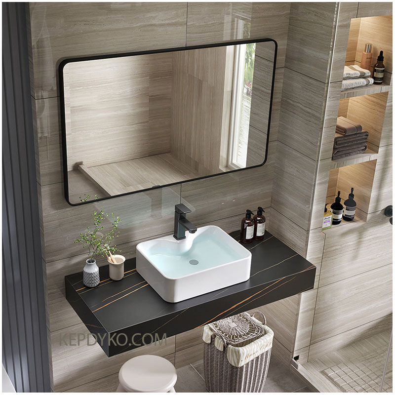 Bàn đá thiết kế dạng hộp hiện đại, bề mặt chống xước hiệu quả, chống thấm và chịu lực tốt. Màu đá sang trọng, phù hợp với phong cách nội thất phòng tắm cao cấp. Dễ lau chùi, không bám bẩn, độ bền lâu dài.