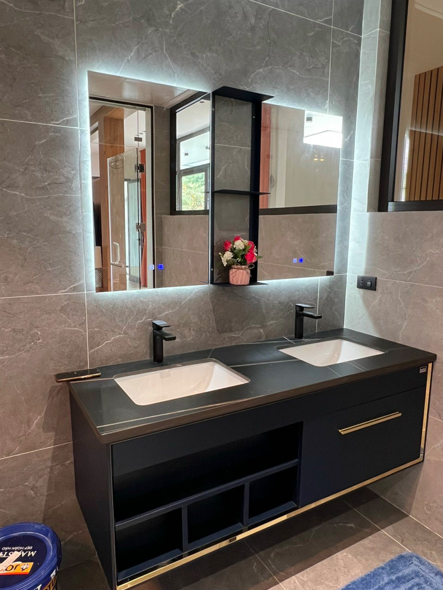 Mẫu mã thiết kế theo phong cách hiện đại, sang trọng, là một điểm nhấn tuyệt vời cho phòng tắm gia đình.